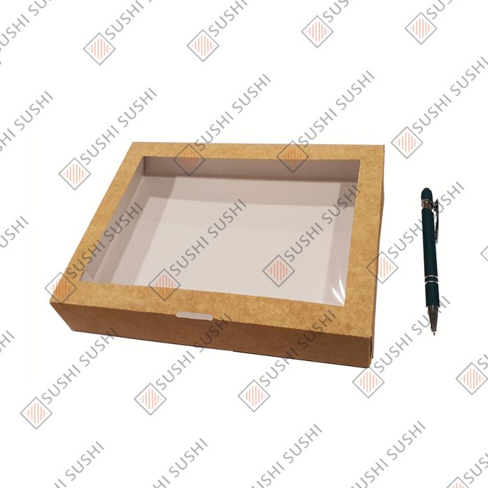 Eco L Scatola per sushi take away in cartoncino per alimenti e finestra in PLA, materiale trasparente organico, completamente biodegradabile.